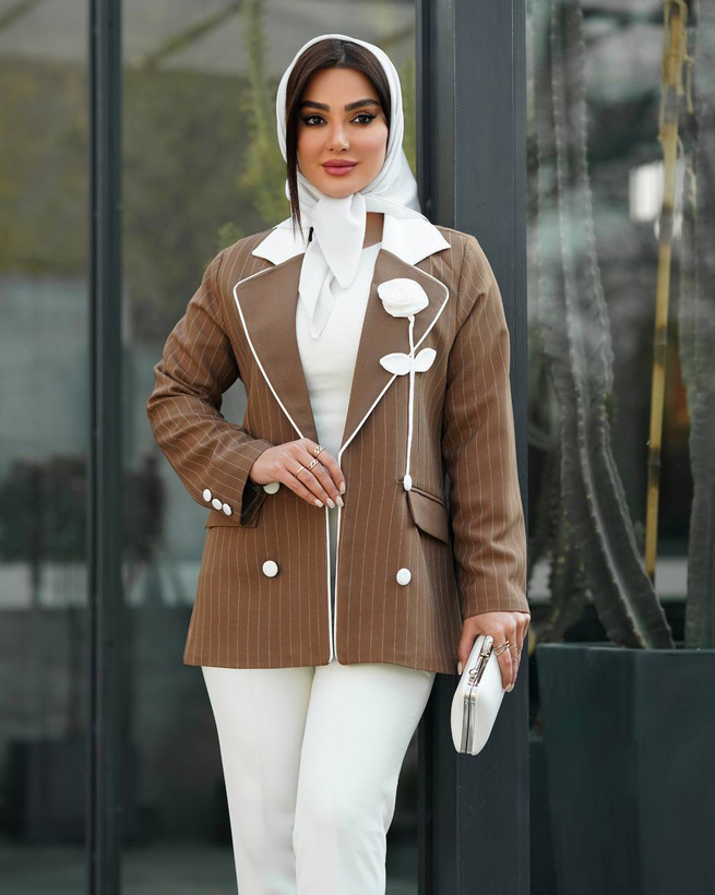 🧥مدل:کت یقه انگلیسی استین دکمه،گل برجسته