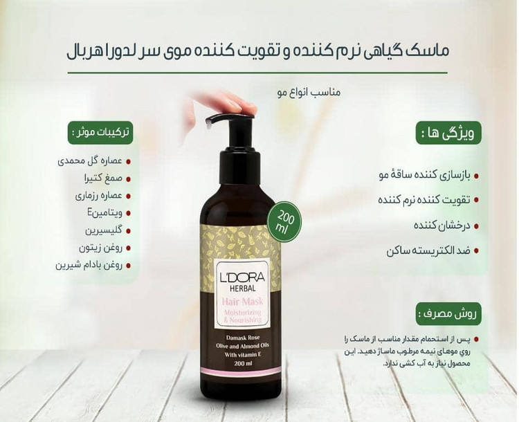 ماسک مو کراتینه لدورا، در واقع یک ماسک مو گیاهی با قدرت و نرم کننده هست که به خاطر کراتینه و پروتئینه بودنش و با ویژگی های منحصر به فرد خودش از موهای شما مراقبت و به زیبایی آن ها کمک می کند. ترمیم کننده و احیاء کننده ساقه مو حاوى بالاترین میزان مواد مغذی و پروتئینی نرم کننده و درخشان کننده مو افزایش رطوبت و انعطاف پذیری مو برگرفته از پروتئین های هیدرولیز شده ابریشم، کراتین و گندم رفع الکتریسیته ساکن مو @ledora__beauty9 @ledora__beauty9 @ledora__beauty9